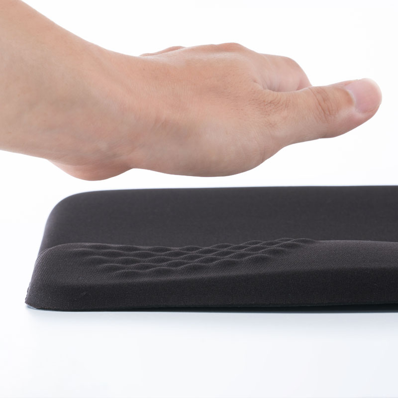 腕托部分设置纹路凹凸感,透气防滑。